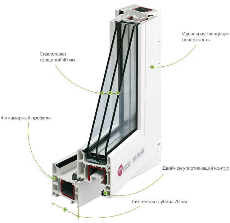 Эта профильная система с классическим дизайном, обладающая наряду с высокими техническими характеристиками, экономичностью и лаконичностью была разработана специально для сурового Российского климата. За вполне умеренную цену, серия профилей Rehau SibDesign предоставляет изделия с тепло- шумоизоляционными характеристиками, пригодными для установки как в холодных так и в теплых климатических зонах РФ. Монтажная глубина окна 70 мм., подходят для квартир, офисов и загородных домов, с круглогодичным проживанием. В разработку Rehau Sib-Design внесены составляющие, которые позволяют обеспечить высокую энергоэффективность окна: это глубина 70 мм, дополнительная изолирующая воздушная камера между армированием и внутренней стенкой профиля «Thermo-Block» и возможность установки стеклопакета толщиной до 40 мм. Результатом является исключительно высокое сопротивление теплопередачи: 0,71 м2°С/Вт. Исключительность теплозащитных свойств окна из профилей Rehau Sib-Design подтверждена экспериментально. Испытания, проведенные специалистами ведущего отраслевого института НИИ Строительной Физики РААСН, показали неизменность рабочих характеристик системы под воздействием экстремально низких температур. В специальной камере были смоделированы суровые климатические условия Сибири: с внешней стороны окна температура опускалась до –42°С, внутри поддерживалась температура +20°С, при повышенной относительной влажности ≈55%. Оконный блок с использованием системы Rehau Sib-Design с честью выдержал перепад температур более 60°С. Окно не промерзло и не «потекло» (выпадения конденсата на профиле не произошло). Коэффициент приведенного сопротивления теплопередаче окна составил 0,8 м2°C/Вт, что превышает сегодняшние максимальные требования к оконным блокам, эксплуатируемым на территории РФ в соответствии со СНиП №23–02–2003 «ТЕПЛОВАЯ ЗАЩИТА ЗДАНИЙ»